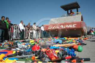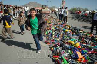 CIUDAD JUÁREZ, CHIHUAHUA, 28MARZO2010.- El día de ayer niños de diferentes edades entregaron armas bélicas de juguete las cuales fueron destruidas por las autoridades. FOTO: IGNACIO RUÍZ/CUARTOSCURO.COM
