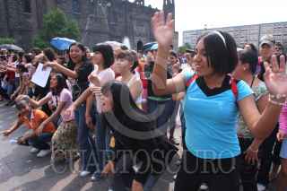 MÉXICO, D.F., 28MARZO2010.- Las quinceañeras del bicentenario ensayaron su vals previó a la celebración de su fiesta del próximo 11 de Abril organizada por el Gobierno del DF a través del Instituto de la Juventud. Este programa busca impulsar actividades lúdicas y sanas entre las adolescentes. Como elemento nuevo se enseño la coreografía y letra del hip hop de los derechos por parte de estas mujercitas que provienen de todas las delegaciones de la capital. FOTO: MOISÉS PABLO/CUARTOSCURO.COM