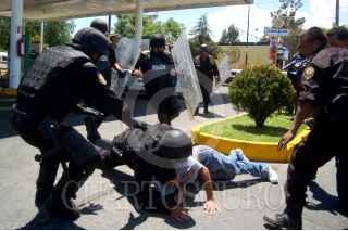 MORELIA, MICHOACAN, 30MARZO2010.- Aproximadamente 200 transportistas de diversas rutas de la ciudad, fueron arrestados por manifestarse en la avenida principal y centro histórico de la zona donde sus principales demandas era el que no se invadieran sus rutas de trabajo. FOTO: LEOVIGILDO GONZALEZ/CUARTOSCURO.COM