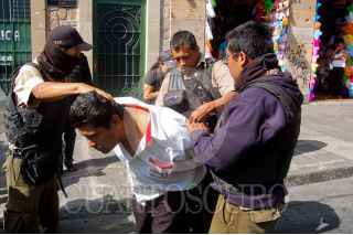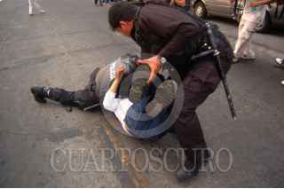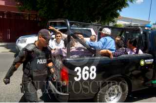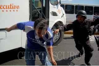 MORELIA, MICHOACAN, 30MARZO2010.- Aproximadamente 200 transportistas de diversas rutas de la ciudad, fueron arrestados por manifestarse en la avenida principal y centro histórico de la zona donde sus principales demandas era el que no se invadieran sus rutas de trabajo. FOTO: LEOVIGILDO GONZALEZ/CUARTOSCURO.COM