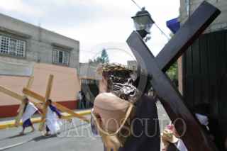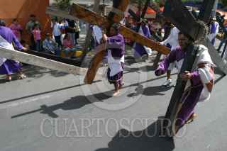 MÉXICO, D.F., 02ABRIL2010.- Los nazarenos recorrieron con sus cruces las calles de los barrios de Iztapalapa, previó a la representación de la Pasión de Cristo que este año celebra su 167 edición. FOTO: MOISÉS PABLO/CUARTOSCURO.COM