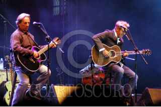 ZACATECAS, ZACATECAS, 02ABRIL2010.- La adrenalina y el recuerdo emergieron bajo el frío clima de la noche, en el concierto de la legendaria banda inglesa América, dentro de las actividades del 24 Festival Cultural Zacatecas. En la imagen América, que complió su 40 aniversario de vida; con la estructura de sonidos melódicossus sus coros y arreglos vocales enfatizaron la armonia que caracteriaza a la pasada decada de los años 60 en el rubro musical. FOTO: ADOLFO VALTIERRA/CUARTOSCURO.COM