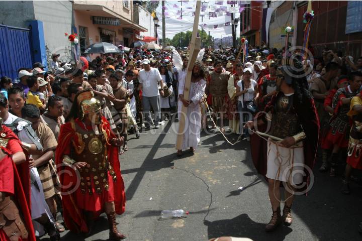 MÉXICO, D.F., 02ABRIL2010.- La representación de la Pasión de Cristo en Iztapalapa se llevó a cabo en su edición 167 en la cual Jesús de Nazareth, personificado por Francisco Gerardo Serrano de 32 años y originario del barrio de Santa Bárbara, recorrió la vía dolorosa rumbo al gólgota ubicado en el Cerro de la Estrella. El nazareno fue crucificado alrededor de las 16:30, una hora más tarde de lo previsto, ante la presencia de Un millón doscientas mil personas según datos estimados por autoridades de la delegación. FOTO: MOISÉS PABLO/CUARTOSCURO.COM