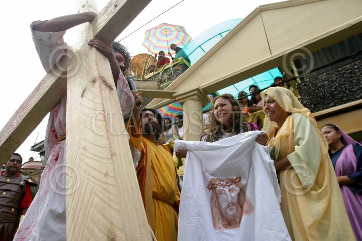 MÉXICO, D.F., 02ABRIL2010.- La representación de la Pasión de Cristo en Iztapalapa se llevó a cabo en su edición 167 en la cual Jesús de Nazareth, personificado por Francisco Gerardo Serrano de 32 años y originario del barrio de Santa Bárbara, recorrió la vía dolorosa rumbo al gólgota ubicado en el Cerro de la Estrella. El nazareno fue crucificado alrededor de las 16:30, una hora más tarde de lo previsto, ante la presencia de Un millón doscientas mil personas según datos estimados por autoridades de la delegación. FOTO: MOISÉS PABLO/CUARTOSCURO.COM