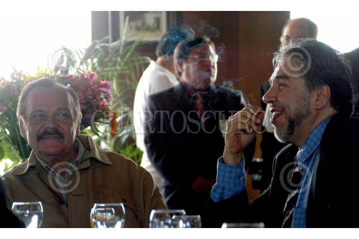 Hector Aguilar Camin platica con la actriz Angelica Aragòn despues del anuncio del festival internacional de literatura Letras en el Golfo. FOTO: Germàn Romero/CUARTOSCURO.COM