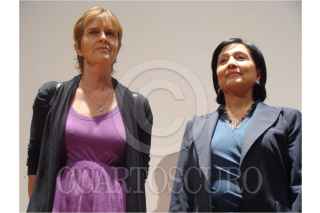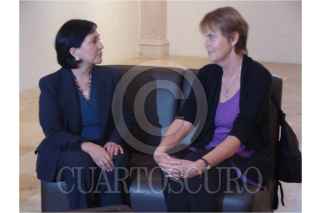 ZACATECAS, ZACATECAS, 05ABRIL2010.- Amalia García, Gobernadora del estado, conversa con María Novaro, directora de películas durante el homenaje que se realizó a Maria en la cineteca de Zacatecas. FOTOS: GABY MARCIAL/CUARTOSCURO.COM
