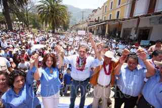 TETELA DE OCAMPO, PUEBLA, 07ABRIL2010.-Ante más de 1500 personas el candidato a la gobernatura, de la coalición "Compromiso por Puebla", Rafael Moreno Valle, les propuso a los habitantes del distrito 23, con cabecera en Tetela de Ocampo, más recursos para el campo, apoyos en salud pública, y que cada clínica cuente con los medicamentos del cuadro básico. FOTO: FRANCO/CUARTOSCURO.COM