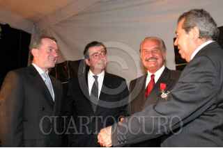Carlos Fuente fue condecorado por el gobierno de Francia. En la imagen conversa con Santiago Creel, secretario de gobernación, Philippe Faure, embajador fránces y Porfirio Muñoz Ledo, ministro especial para las relaciones diplomáticas con la Unión Europea. FOTO: Moisés Pablo/CUARTOSCURO.COM