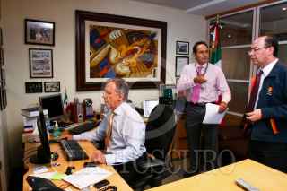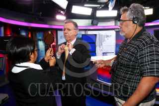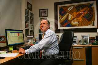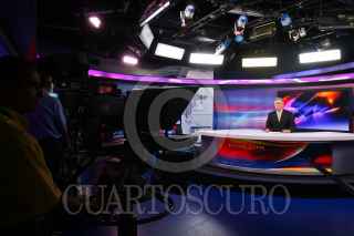 MÉXICO, D.F., 09ABRIL20010.- El periodista Joaquín López Dóriga cumplió 10 años de conducir "El Noticiero" un espacio informativo sobre los hechos más relevantes en México y el mundo, el cual se produce y transmite desde las instalaciones de Televisa Chapultepec. El periodista, conocido y apodado como "el teacher" por sus compañeros de trabajo, revisa desde su oficina cada detalle de la transmisión que inicia en punto de las 22:40 de lunes a viernes por el Canal 2 de Televisa. FOTO: ISAAC ESQUIVEL/CUARTOSCURO.COM