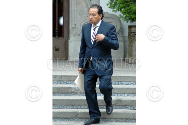 MÉXICO, D.F., 09ABRIL2010.- El primer ministro de Noruega Jens Stoltenberg y el presidente Felipe Calderón al termino de un mensaje que ofrecieron a los medios de comunicación en las escalinatas de la residencia oficial de Los Pinos. FOTO: RODOLFO ANGULO/CUARTOSCURO.COM