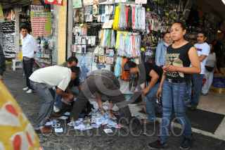 MÉXICO, D.F., 09ABRIL2010.- Personal de la Delegación Cuauhtemoc con apoyo de la Policía Federal, realizaron un operativo en contra de piratería, en los puestos semifijos en distintas calles en donde se vende piratería como a las afueras de la Plaza de la Computación sobre Eje Central Lázaro Cárdenas, Salto del Agua e Insurgentes. FOTO: LUIS CARBAYO/CUARTOSCURO.COM