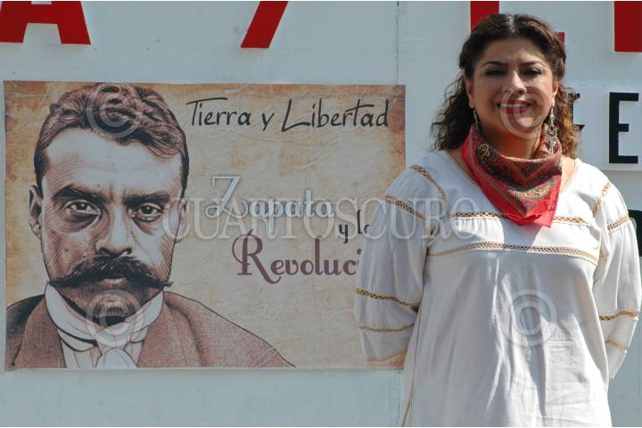 MÉXICO, D.F., 10ABRIL2010.- Un grupo de caballerangos encabezados por Clara Brugada, jefa delegacional de Iztapalapa realizaron la Cabalgata “Tierra y Libertad” por el 91 aniversario luctuoso del fallecimiento de "El Caudillo del Sur" Emiliano Zapata. FOTO: RODOLFO ANGULO/CUARTOSCURO.CO