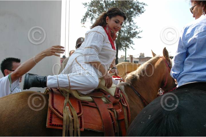 MÉXICO, D.F., 10ABRIL2010.- Un grupo de caballerangos encabezados por Clara Brugada, jefa delegacional de Iztapalapa realizaron la Cabalgata “Tierra y Libertad” por el 91 aniversario luctuoso del fallecimiento de "El Caudillo del Sur" Emiliano Zapata. FOTO: RODOLFO ANGULO/CUARTOSCURO.CO