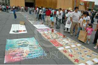 MÉXICO, D.F., 10ABRIL2010.- Miembros de La Otra Campaña del EZLN se instalaron en el Zócalo en este día de 91 aniversario del fallecimiento del "El Caudillo del Sur" Emiliano Zapata. FOTO: RODOLFO ANGULO/CUARTOSCURO.COM