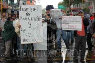ECATEPEC, ESTADO DE MÉXICO, 11ABRIL2010.- Ex trabajadores de las diferentes presidencias municipales del Estado de México, se manifiestan en contra del cumplimiento de sus demandas. El presidente de la Sala Auxiliar de Ecatepec, del Tribunal Estatal de Conciliación y Arbitraje (TECA), Víctor Javier Sosa Muñiz, reconoció que tiene acumuladas 4 mil 500 demandas que iniciaron trabajadores de más de 50 ayuntamientos, que fueron despedidos injustificadamente desde 2007 a la fecha. En los últimos seis meses el municipio de Nezahualcóyotl enfrenta 890 demandas laborales recientes, mientras que Ecatepec 800 sin que a la fecha se hayan resuelto. FOTO: MARIO NULO/CUARTOSCURO.COM