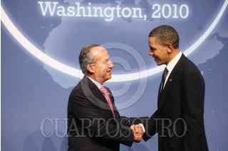 WASHINGTON, D.C., 12ABRIL2010.- Felipe Celderon, Presidente del México, saluda a Barack Obama, Presidente de los Estados Unidos de Norte América durante la Cumbre de Seguridad Nuclear. FOTO: ALFREDO GUERRERO/CUARTOSCURO.COM
