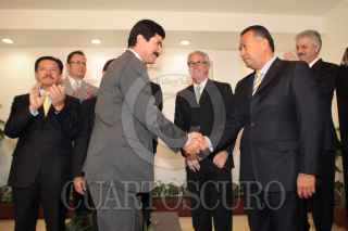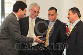 MÉXICO D.F., 14ABRIL2010.- El diputado del PAN Javier Corral conversa con el periodista Javier Solorzono y los senadores del PRD Carlos Sotelo García y Carlos Navarrete despues de posponer un debate que sería hoy, entre el panista Javier Corral y el perredista Carlos Sotelo, sobre la ley de medios en donde se revisarían diversas iniciativas para reformar la Ley Federal de Radio y Televisión, con el objetivo de avanzar hacia una reforma que permita que en México exista un modelo democrático de comunicación desde los medios electrónicos. FOTO: CUARTOSCURO.COM