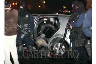 NEZAHUALCOYOTL, ESTADO DE MÉXICO, 15ABRIL2010.- La noche de este miércoles policías federales se enfrentaron con una banda de secuestradores que plagiaron a un presunto narcotraficante de la zona, el saldo es de tres muertos sobre avenida Bordo de Xochiaca frente al centro comercial Ciudad Jardín. FOTO: LUZ ACEVEDO/CUARTOSCURO.COM