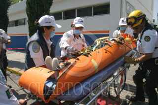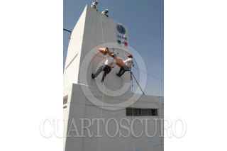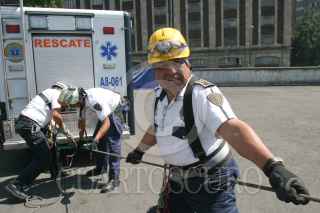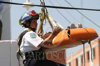 MÉXICO D.F., 15ABRIL2010.- Elementos del Escuadrón de Rescate y Urgencias Médicas (ERUM) de la Policía capitalina, realizaron el día de hoy una demostración de rescate vertical en el cual participo personal medico y de rescate urbano. FOTO: SAÚL LÓPEZ/CUARTOSCURO.COM