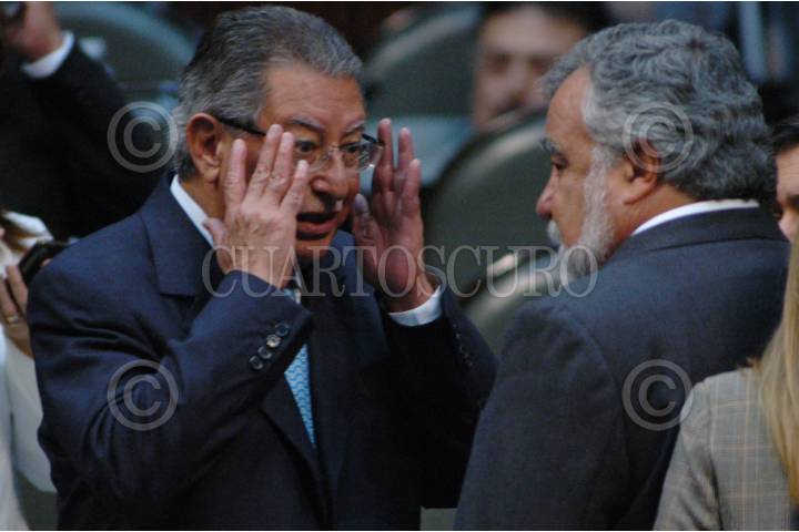 MÉXICO, D.F., 15ABRIL2010.- El diputado del PRI Francisco Rojas conversa con el diputado del PRD Alejandro Encinas durante la sesión ordinaria de la Cámara de Diputados. FOTO: RODOLFO ANGULO/CUARTOSCURO.COM