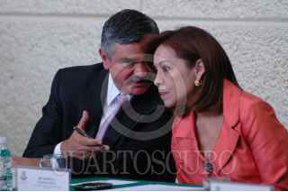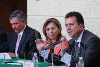 MÉXICO, D.F., 15ABRIL2010.- Leonardo Valdez Zurita, consejero presidente del Instituto Federal Electoral (IFE); la diputada del PAN Josefina Vazquez Mota y Carlos Garcia de Alba, director ejecutivo del Instituto de Mexicanos en el Exterior durante una reunión de trabajo con migrantes que se realizo en la Cámara de Diputados. FOTO: RODOLFO ANGULO/CUARTOSCURO.COM