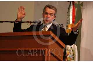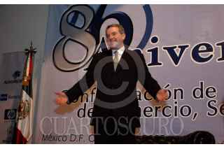 El secretario de Gobernacion Santiago Creel al terminar su conferencia ante consejeros de la Concanaco. Foto: German Romero/CUARTOSCURO.COM