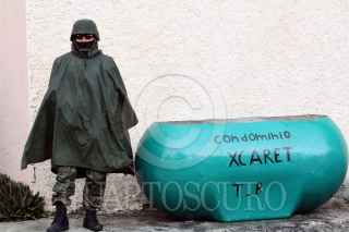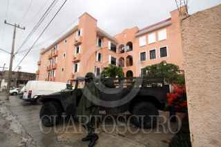 CANCUN, QUINTANA ROO, 15ABRIL2010.- Fuerzas militares encontraron en la Supermanzana 20, un departamento equipado con tecnología israelí que servía para espiar a personajes de la política, empresarios y periodistas, en el lugar, marcado con el departamento 401 condominios Xcaret en la calle Jaleb. Los militares encontraron 20 máquinas de scanner telefónicos, micrograbadores, pantallas de sonido digital, digitalizadores y tecnología de espionaje para interceptar llamadas de telefonía fija, celular y radio comunicación. FOTO: AMARANTA PRIETO/CUARTOSCURO.COM