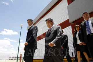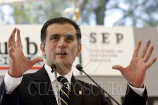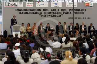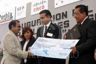 PUEBLA, PUEBLA, 15ABRIL2010.- Alonso Lujambio, Secretaría de Educación Pública, durante la inauguración de nuevos espacios educativos en el CBTIS número 265. Acompañado de la alcaldesa capitalina, Blanca Alcalá Ruiz; y el Secretario de Educación Pública estatal, Darío Carmona García. FOTO: FRANSISCO GUASCO/CUARTOSCURO.COM