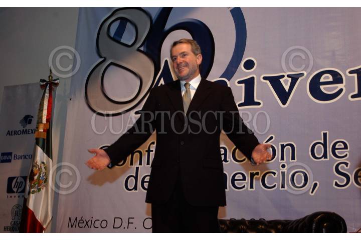 El secretario de Gobernacion Santiago Creel al terminar su conferencia ante consejeros de la Concanaco. Foto: German Romero/CUARTOSCURO.COM