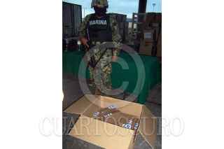 VERACRUZ, VERACRUZ, 19ABRIL2010.- A través de un comunicado de prensa la Secretaria de Marina informó que en una operación conjunta entre dicha dependencia, el Servicio de Administración Tributaria y la Procuraduría General de la República, se aseguraron 1577 kilográmos de cocaína, en el puerto de Veracruz. Los cuales fueron transportados vía marítima a bordo de un buque de bandera Liberiana procedente de Cartagena, Colombia y descargados en la aduana de dicho puerto. La droga quedo a disposición del Agente del Ministerio Público de la Federación, para los fines legales que en su caso resulten y a resguardo en instalaciones de la Armada de México. FOTO: ESPECIAL/CUARTOSCURO.COM