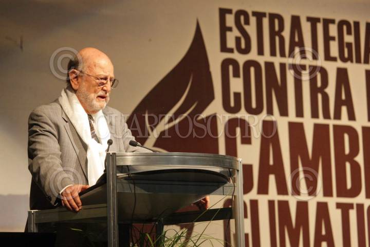 ZACATECAS, ZACATECAS, 19ABRIL2010.- El Dr. José Sarukahán Kermez, Coordinador Nacional de la Comisión Nacional para el Conocimiento y Uso de la Biodiversidad en México, inició con conferencia magistral, el "2do Foro de Estrategias Contra el Cambio Climático". FOTO: CUARTOSCURO.COM