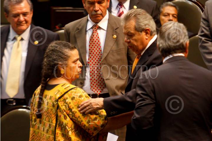 MÉXICO, D.F., 21ABRIL2010.- El diputado del PRI Francisco Rojas conversa con el diputado del PRD Alejandro Encinas durante la sesión ordinaria de la Cámara de Diputados. FOTO: RODOLFO ANGULO/CUARTOSCURO.COM