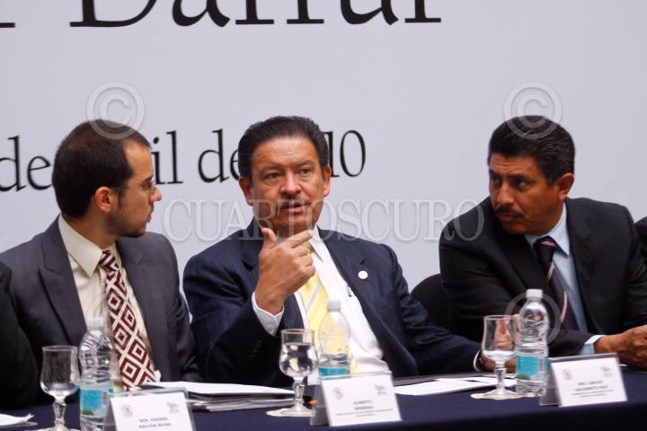 MÉXICO, D.F., 22ABRIL2010.- Greg Sanchez, precandidato del PRD a la gobernatura de Quintana Roo se reunió con el senador Carlos Navarrete en el Senado de la República. FOTO: RODOLFO ANGULO/CUARTOSCURO.COM