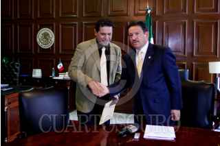 MÉXICO, D.F., 22ABRIL2010.- Greg Sanchez, precandidato del PRD a la gobernatura de Quintana Roo se reunió con el senador Carlos Navarrete en el Senado de la República. FOTO: RODOLFO ANGULO/CUARTOSCURO.COM