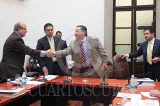 MÉXICO, D.F., 22ABRIL2010.- Los Senadores del PRD se reunieron con Fernando Gómez Mont, secretario de Gobernación para informar del compromiso del Gobierno Federal para enviar las reformas del fuero militar, pero hasta el próximo periodo de sesiones. FOTO: CUARTOSCURO.COM