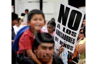 VERACRUZ, VERACRUZ, 22ABRIL2010.- Cerca de 500 personas marcharon por la zona centro en la cual acusaron a el candidato gubernamental panista y ex director nacional del ISSSTE, Miguel Ángel Yunes Linares, de pederasta. Los inconformes no quisieron dar entrevistas, pero portaban pancartas y panfletos. Al político se le menciona en el libro “Los demonios del edén” escrito por la periodista Lidia Cacho, donde hacía referencia a diversos casos de abuso infantil. FOTO: FÉLIX MÁRQUEZ/CUARTOSCURO.COM