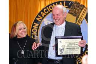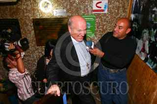MÉXICO, D.F., 22ABRIL2010.- Onésimo Cepeda, obispo de Ecatepec, acudió a las oficinas de la Asociación Nacional de Locutores de México para recibir el Micrófono de Oro. FOTO: ISAAC ESQUIVEL/CUARTOSCURO.COM