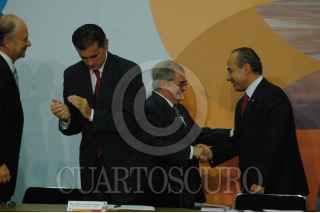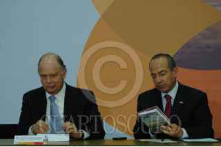 MÉXICO, D.F., 23ABRIL2010.- Enrique Krauze Kleinbort, historiador, y Felipe Calderón Hinojosa, presidente de México, estuvieron presentes en el lanzamiento del libro historia de México en la residencia oficial de Los Pinos. FOTO: IVAN STEPHENS/CUARTOSCURO.COM