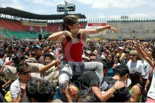 MÉXICO, D.F., 24ABRIL2010.- Cientos de jóvenes se reunen en el Foro Sol para escuchar a las bandas de rock en el Vive Latino 2010. FOTO: FELIX MARQUEZ/CUARTOSCURO.COM