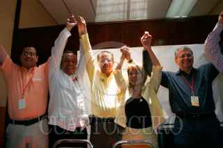 SAN MANUEL, TLAXCALAS 25 ABRIL2010.- Minerva Hernández, candidata a la gobernatura por la alianza 'Transparencia y Honestidad por Tlaxcala' la cual es realizada por los partidos PRD, PT, Convergencia, realizó su registro en las instalaciones del Instituto Estatal Electoral y fue acompañada de Manuel Camacho Solis, Jesús Ortega del PRD, Ricardo Mejia por Convergencia. FOTO: J. GUADALUPE PÉREZ/CUARTOSCURO.COM