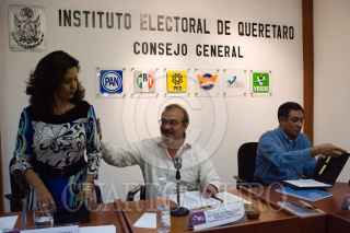 QUERETARO, QUERETARO, 26ABRIL2010.- La licenciada Sonia Clara junto a el doctor Angel Eduardo Simon, Presidente del Consejo General, en sesión ordinaria del Instituto Electoral de Querétaro, se acordó sancionar a los partidos PRI, PAN PRD por irregularidades formales detectadas a estos. FOTO: DEMIAN CHAVEZ/CUARTOSCURO.COM