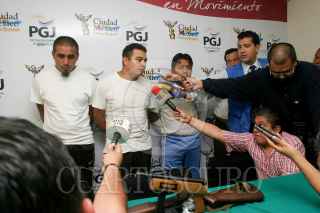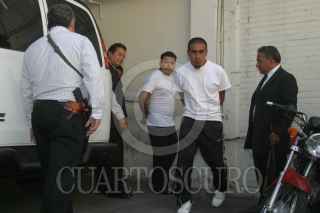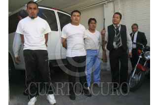 MÉXICO D.F., 26ABRIL2010.- Elementos del grupo FAS de la Procuraduría de Justicia del Distrito Federal, presentaron a los medios de comunicación a Juan Martínez Feria, Alberto García Carmona y Donato Esteva, presuntos secuestradores de un empresario. Dichos sujetos cobraban los rescates a pesar de que su rehén fue privado de la vida. FOTO: SAÚL LÓPEZ/CUARTOSCURO.COM