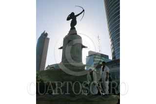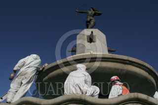 MÉXICO D.F., 26ABRIL2010.- Trabajadores realizan obras de restauración en la Glorieta de la Diana Cazadora ubicada en la avenida paseo de la Reforma. FOTO: ENRIQUE ORDÓÑEZ/CUARTOSCURO.COM