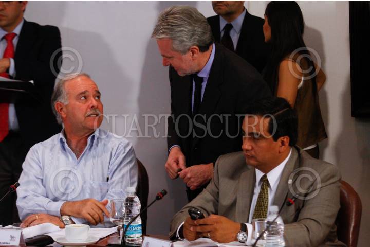 MÉXICO D.F., 26ABRIL2010.- Los senadores Jesús Murillo Karam, Alejandor Sánchez Alcocer y Tomás Torres Mercado durante la reunión de trabajo de la Comisión de Justicia del Senado de la República. FOTO: IVAN STEPHENS/CUARTOSCURO.COM