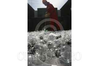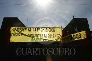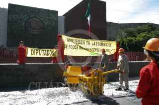 MÉXICO D.F., 27ABRIL2010.- Activistas integrantes de Green Peace, destruyeron con aplanadoras mas de 3 mil focos, frente a la Cámara de Diputados, esto para exigir a los legisladores aprobar la Ley de Aprovechamiento Sustentable de la Energía, antes del 29 de Abril fecha en la que se concluye el segundo periodo ordinario de sesiones de esta legislatura. FOTO: GUILLERMO PEREA/CUARTOSCURO.COM