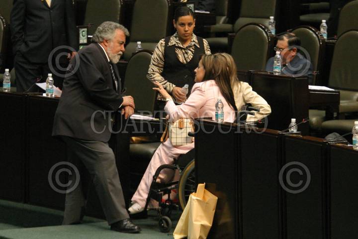 MÉXICO D.F., 27ABRIL2010.- Beatriz Paredes Rangel, Diputada del PRI, Ninfa Salinas y Juan José Guerra, Diputados PVEM, durante la sesión en la Cámara de Diputados. FOTO: GUILLERMO PEREA/CUARTOSCURO.COM