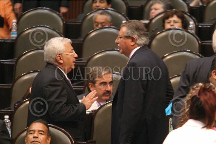 MÉXICO D.F., 27ABRIL2010.- Beatriz Paredes Rangel, Diputada del PRI, Ninfa Salinas y Juan José Guerra, Diputados PVEM, durante la sesión en la Cámara de Diputados. FOTO: GUILLERMO PEREA/CUARTOSCURO.COM