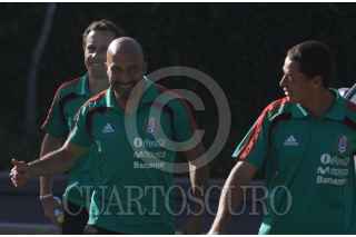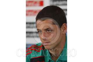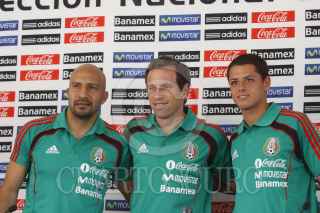 MÉXICO, D.F., 27ABRIL2010.- Gerardo Torrado, Oscar Pérez y Javier Hernández Balcazar durante la rueda de prensa que realizaron selecciondos nacionales que están concentrados en el Centro de Alto Rendimiento de cara al mundial de balonpié que se disputará en Sudáfrica. FOTO: IVAN STEPHENS/CUARTOSCURO.COM