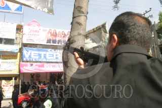 MÉXICO, D.F., 28ABRIL2010.- Miguel Angel Mancera, Procurador de General de Justicia del Distrito Federal, acudio al lugar donde un par de secuestradores se fugaron en una patrulla de la Secretaría de Seguridad Pública Un secuestrador amaga a un rehén luego de un intento de asalto a un establecimiento de Montepío Luz Saviñon en la colonia Acueducto de Guadalupe, al parecer tres individuos asaltaron el lugar pero algo salió mal al interior y tomaron a varias personas secuestradas las cuales han sido liberadas poco a poco pero amagan con matar a los empleados del lugar. FOTO: SAÚL LÓPEZ/CUARTOSCURO.COM