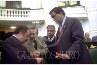 Mèxico D.F22DIC2003.- Los legisladores del PRI, Manuel Jímenez, Jaime Aguilar, José Medel y Mauricio López durante la sesión en la ALDF en la cual aprobaron la ley de austeridad del DF que impone topes salariales al jefe de Gobierno, secretarios y directores. FOTO: Eunice Adorno/CUARTOSCURO.COM